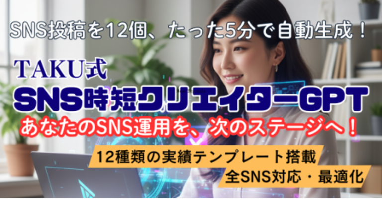 SNS投稿を12個、たった5分で自動生成!「SNS時短クリエイターGPT」