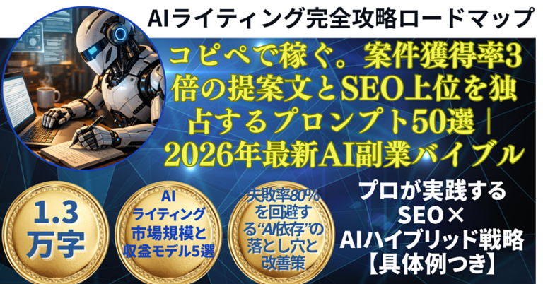 コピペで稼ぐ。案件獲得率3倍の提案文とSEO上位を独占するプロンプト50選|2026年最新AI副業バイブル